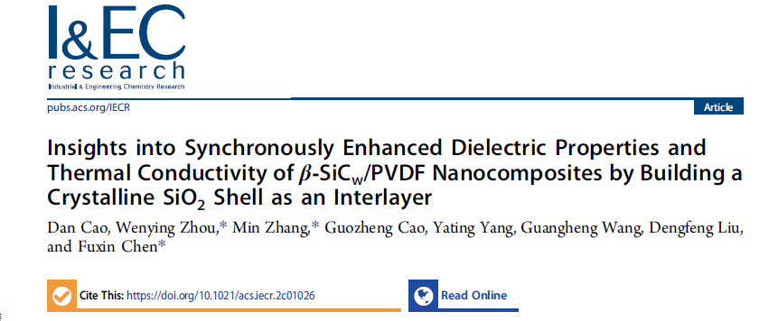 近日,beats365vip官网登录入口周文英教授团队-压电催化与新能源电工材料研究中心在国际化工领域公认的三大经典刊物之一《Industrial & Engineering Chemistry Research》上发表题为 “Insights into synchronously enhanced dielectric properties and thermal conductivity of β-SiCw/PVDF nanocomposites by building a crystalline SiO2 shell as an interlayer” 最新研究成果,实现了化工公司在国际化工研究领域公认的顶级刊物上的学术论文的首次重要突破,标志着公司化工学科在基础化工材料领域的研究又上新台阶,有力推动了化工学科发展。IECR为美国化学会旗下工程技术领域著名期刊,旨在发表全球化学工程应用领域内最新的高质量原创性研究。