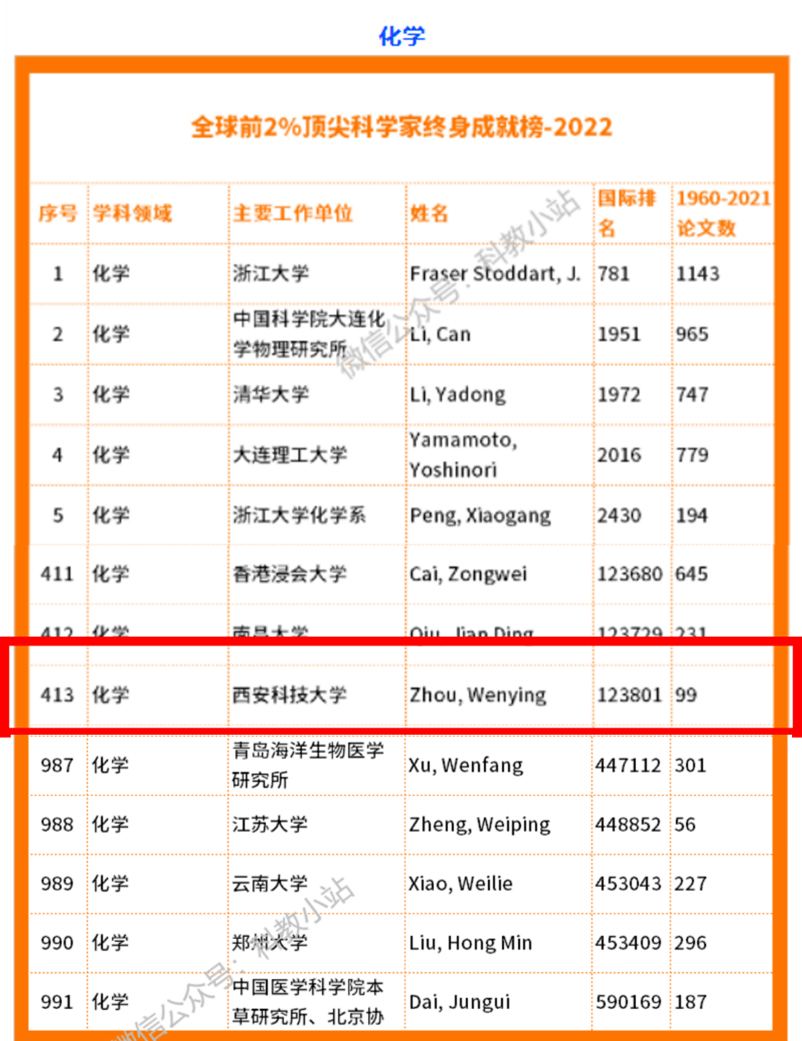 化工公司周文英教授入选“终身科学影响力排行榜(1960-2022)”,此榜单共有7795位国内学者入围。入选全球前2%顶尖科学家榜单,标志着公司的研究已具有较高的全球影响力,不仅是对入选榜单教师个人科研能力的充分肯定,也是对公司化学团队建设的充分肯定,对推动公司科学研究水平再上新台阶以及扩大影响力均有积极作用。