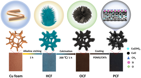 基于以上现状,公司beats365vip官网登录入口屈孟男教授研究团队将光热材料与超浸润概念相结合,以价格低廉的超疏水泡沫铜为基底,通过对其进行超亲水改性,巧妙构建了一种非接触式的具有保温空腔的Janus太阳能界面蒸发器。