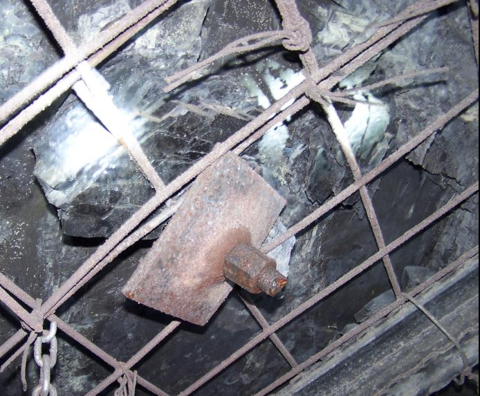 1. 锚带网锈蚀 煤巷锚带网支护后通常处于裸露状态,受巷内潮湿空气、及二氧化硫、硫化氢等有害气体的侵蚀,锚带网锈蚀速率很快。