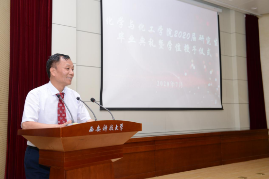 7月26日下午,化工公司在雁塔校区主楼报告厅举行2020届研究生毕业典礼暨学位授予仪式,公司教授委员会成员及教授代表、公司党政班子成员、各系(中心、办公室)主任、毕业生辅导员、2020届全体研究生参加典礼。副经理李振主持毕业典礼暨学位授予仪式。