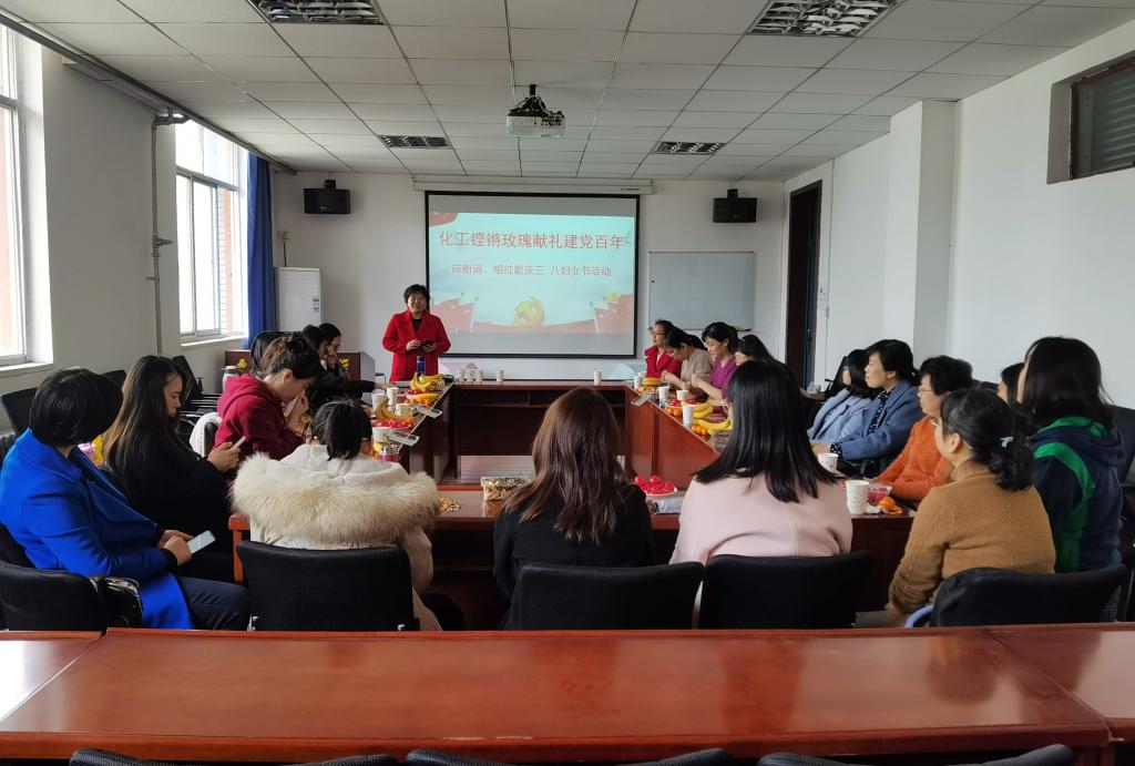 为迎接中国共产党建党100周年,并为“十四五”规划开局之年鼓劲加油。化工公司工会于3月5日下午在雁塔校区公司会议室开展“铿锵玫瑰献礼建党百年暨唱红歌,诗朗诵三八妇女节庆祝活动”。