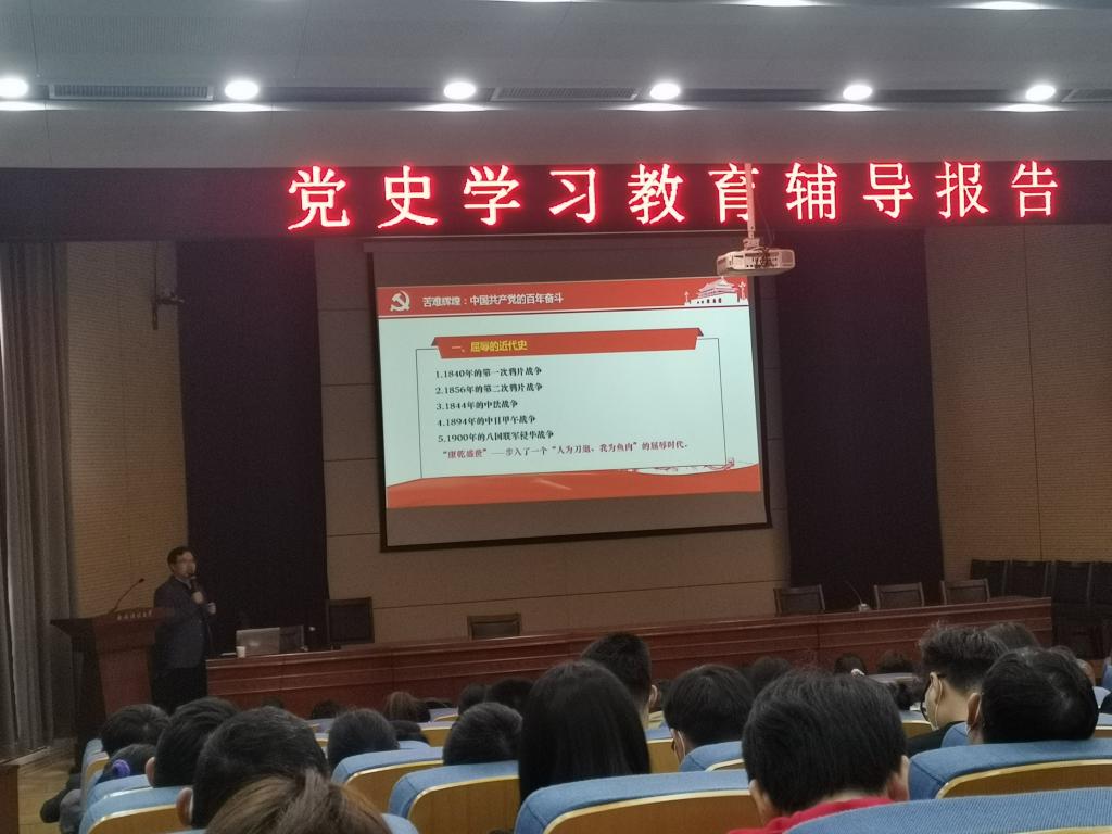 张铭钟教授分别从深刻领会党史学习的目的和意义、苦难与辉煌:中国共产党的百年奋斗、知史爱党、知史爱国等3个方面进行报告。整场报告结合生动实践和鲜活事例,以中国共产党的成立、中共一大到十九大的发展脉络,对中国共产党百年奋斗历程作了全面系统、深入浅出的解读辅导。既有理论高度、又有实践分析,为与会师生呈上了一道丰盛的党史“大餐”。