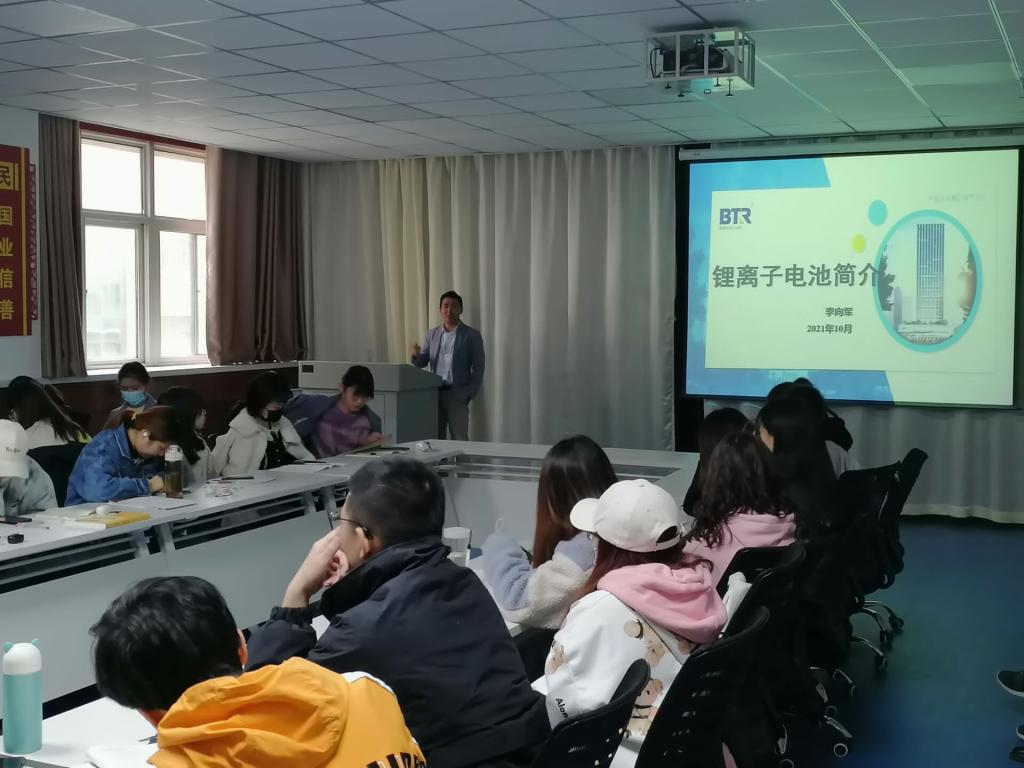10月11日下午,beats365vip官网登录入口在12教501教室举办了2021-2022学年第一学期“企业专家进课堂”活动,邀请了贝特瑞新材料集团股份有限公司技术总监、高级工程师李向军来公司为化工18级卓越班员工作“锂离子电池研究进展”的报告。