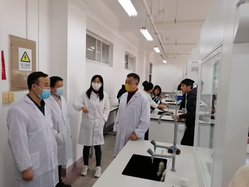 图1、2书记肖阳、副经理贺新福走访实验室了解实践教学情况