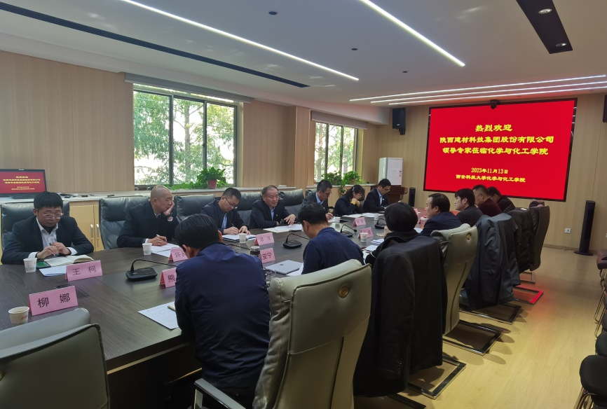 11月13日下午,陕西建材科技集团股份有限公司副总经理时启林一行7人来化工公司开展产学研交流活动,交流会在雁塔校区化工公司会议室举行。化工公司党委书记肖阳、经理张亚婷、相关科研团队负责人等10余人参加交流会,会议由副经理李振主持。