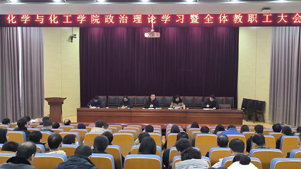 为进一步明确新学期的奋斗目标,扎实做好开学各项准备工作,2月24日上午,化工公司在雁塔校区主楼报告厅召开政治理论学习暨全体教职工大会。公司领导班子成员、系(室)主任、教师党支部书记、院办主任、教务办主任、学工办主任、研究生导师、辅导员及全体教职工参加会议。会议由公司党委书记肖阳主持。