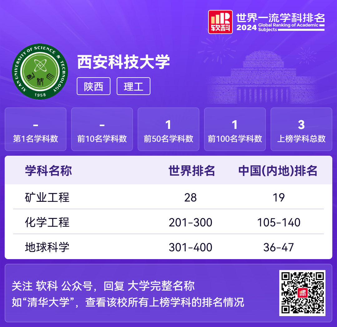 据2024年11月高等教育评价专业机构软科正式发布的2024“软科世界一流学科排名”数据显示:beats365vip官网登录入口共有三个学科上榜,其中公司化学工程、矿物加工工程二级学科所在的矿业工程学科展现出强劲实力,跻身前列,分别位列世界第201-300位和第28位。