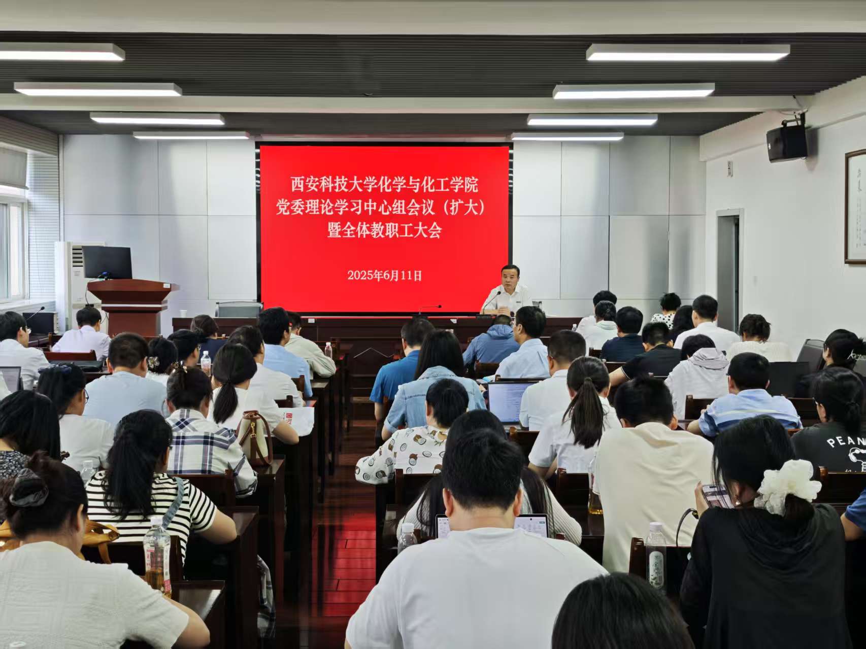 为深入学习贯彻2025年全国两会精神,全面落实中央八项规定精神,推动公司科技创新与高质量发展,6月11日,公司特邀马克思主义公司教授张海燕、化工公司教授李振在临潼校区作专题辅导报告。公司党委委员、纪委委员、班子成员、教工党支部书记、各系(室)主任、工会主席、经理助理、院办主任、教务班主任、团委书记、学科秘书及全院教师参加会议,会议由公司党委书记肖阳主持。