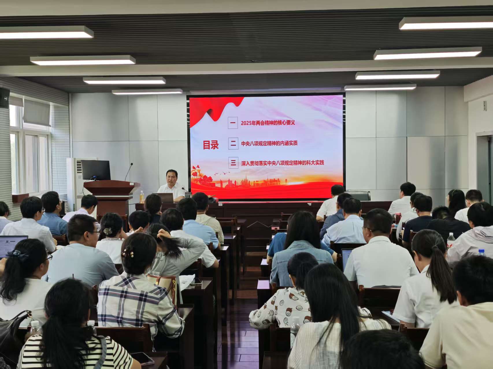 肖阳在主持报告会时指出,全体党员干部要以高度的政治责任感和使命感,深入学习领会全国两会精神,以中央八项规定精神为标尺,强化党建引领,推动科技创新与成果转化,为服务国家战略和区域经济高质量发展注入更强动能。