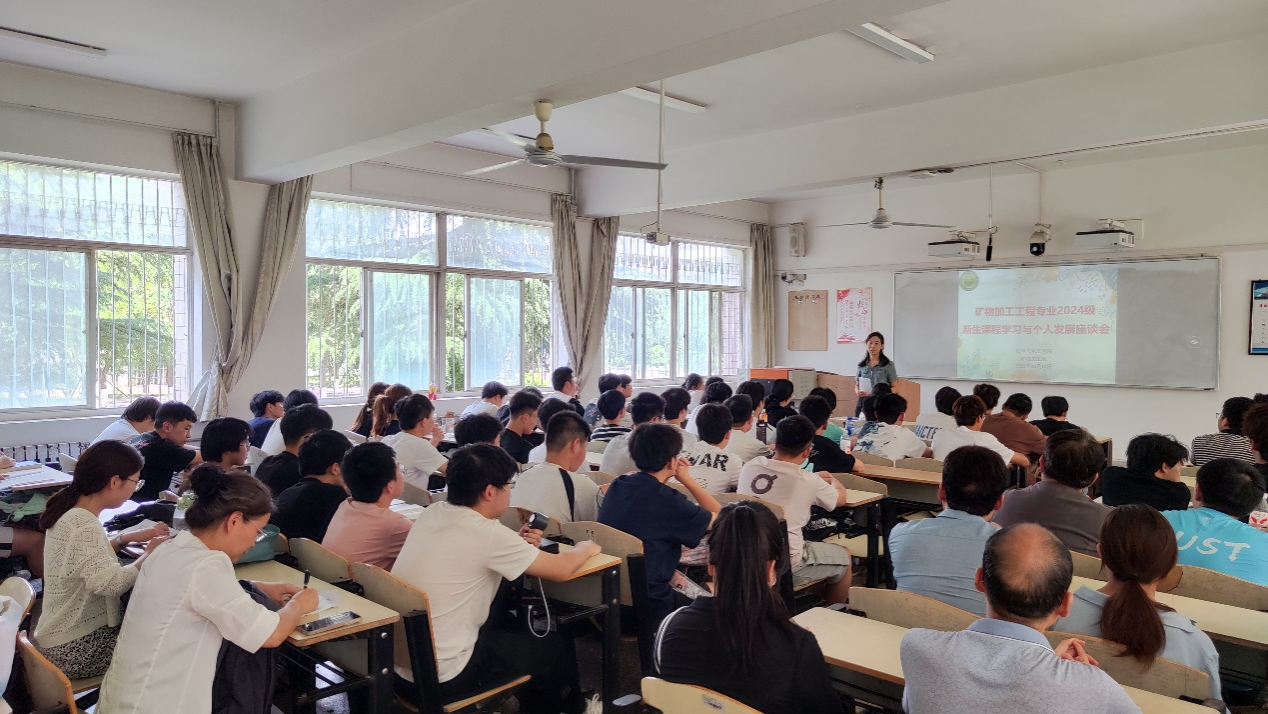 2025年6月10日,矿物加工工程专业在临潼校区骊山校园2-102教室开展“专业课程学习与职业发展经验分享”“百干万工程”报告会暨能源资源清洁利用讲堂。活动特邀矿物加工工程专业首届优秀毕业生张舒洁返校分享,专业2024级全体新生、班主任陈友良、于跃先和在校专业教师赵世永、杨伏生、刘莉君、盛秋月、黄龙等参加座谈,本活动由系主任屈进州主持。