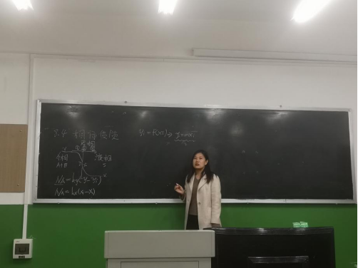四位新进党员教工分别选取伯努利方程及应用、传热速率、吸收相际传质及热力学P-V-T关系和状态方程四部分内容进行讲解。在试讲过程中,新进教工讲得认真,老教工听得认真;试讲结束,老教工纷纷从讲课的内容选择、板书的排版格式、字体工整、声音大小等方面给他们出谋划策,为他们今后走上讲台提供了很多实用的参考意见。