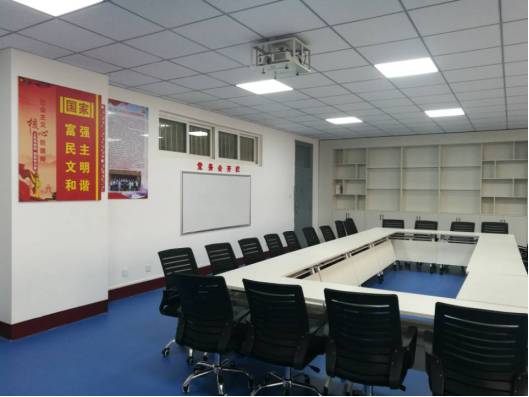 基于三个功能划分,党建活动室进行了整体的规划,除了活动室所必须的桌椅外,主要建设内容包含了: