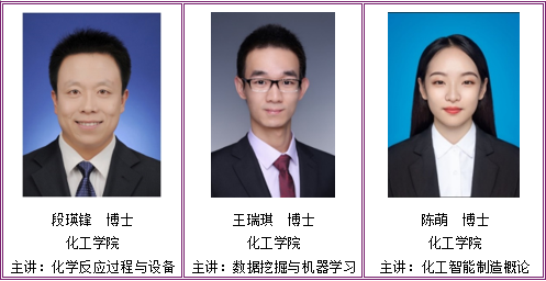 本微专业教师队伍来自化工公司、电控公司和计算公司,由12人组成,其中教授2人、副教授3人、讲师7人,全部具有博士学位。团队教师主要从事化学工程与工艺、数据挖掘与机器学习、云计算与大数据、人工智能与模式识别等多元方向的教学与研究工作。